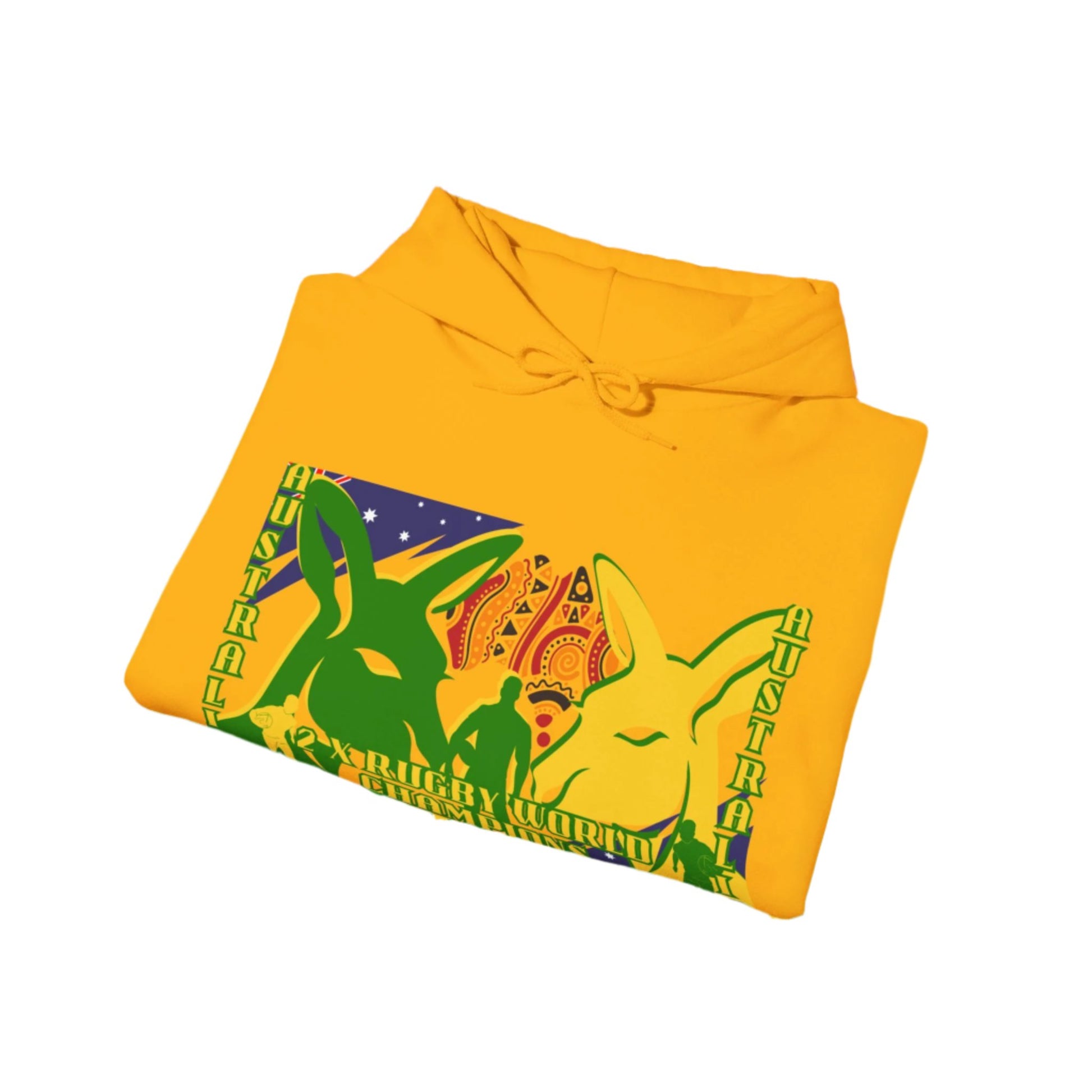 Ideal for fans of Australian rugby, the Green and Gold, and Indigenous culture—this hoodie is a must-have for any rugby supporter!